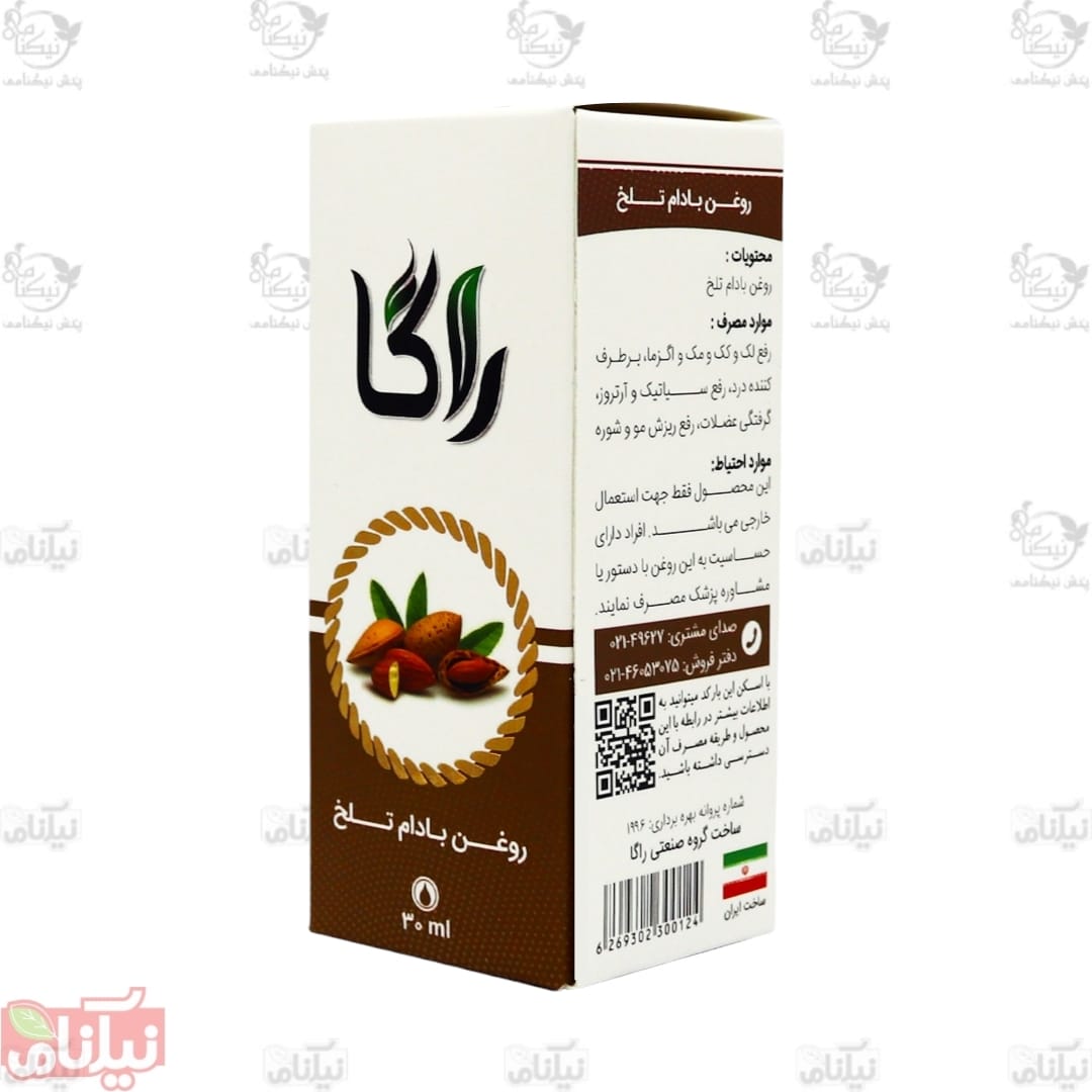روغن بادام تلخ راگا محصولی کاملا گیاهی و طبیعی می باشد که خواص بسیاری دارد و برای مراقبت از پوست و مو، ضدعفونی کننده و ضد باکتری، درمان درد و عفونت گوش و درمان بسیاری از بیماری ها مفید و موثر است.